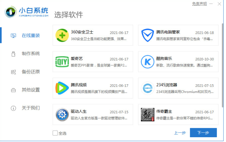 2、請勾選要安裝的應用軟件,我們點擊下一步,耐心等待軟件下載系統鏡像、驅動等資料。