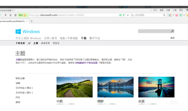 2、點一下“聯機獲取更多主題”后,跳出“主題”官方網頁。