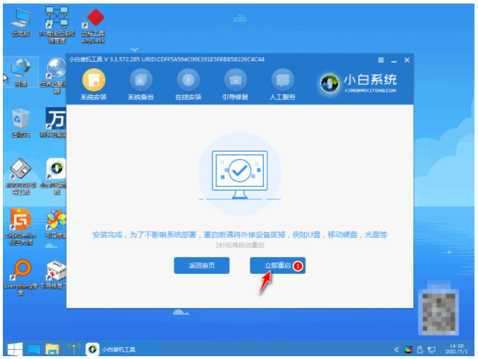 3、進入pe系統安裝系統,重啟電腦之后即可進入新系統桌面。