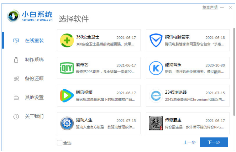 1、首先下載安裝小白軟件,點擊在線重裝,選擇好需要安裝的系統版本,點擊下一步。