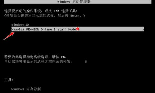 4、重啟電腦之后選擇XiaoBai PE-MSDN按回車進入PE 系統。