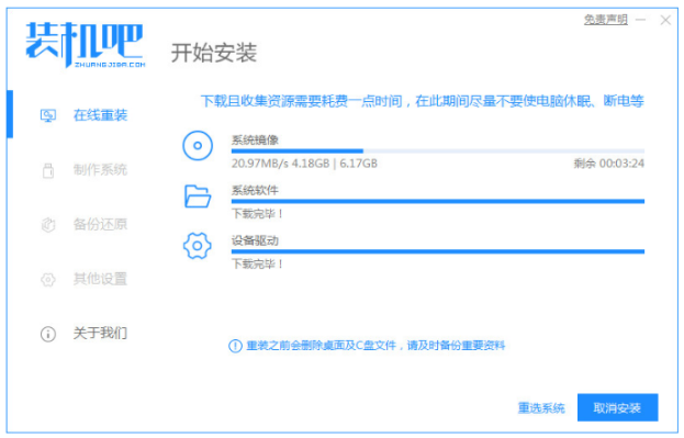 2、裝機軟件開始自行下載win8鏡像和軟件等等。