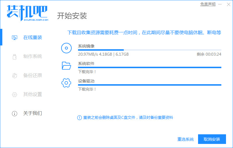 3、等待下載搜集安裝系統所需要的鏡像、驅動等資源。