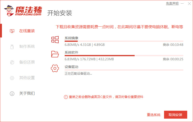 2、耐心等待下載搜集系統鏡像、軟件、設備驅動等等各種資源。