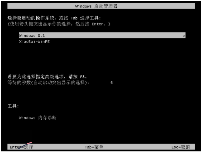 4、重啟電腦之后進入了開機選項的界面,選擇第二項xiaobai-pe系統按回車鍵進入其中。