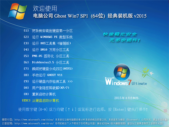 電腦公司 Ghost Win7 SP1 X64 經典裝機版采用官方win7 sp1旗艦版為制作母盤,采用最新的封裝制作技術,系統不存在任何的病毒,經過嚴格的全盤掃描。支持在線更新win10,升級后同樣為激活狀態!