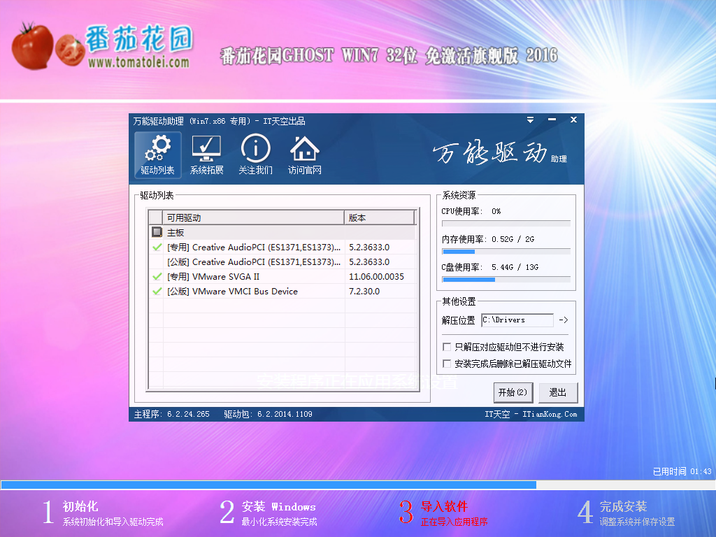 - 集成常見硬件驅動,智能識別+預解壓技術,絕大多數硬件可以快速自動安裝相應的驅動。