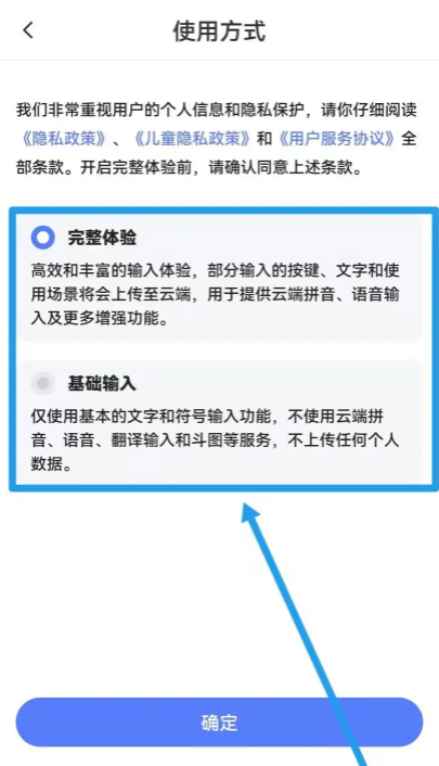 4、選擇【完整體驗】或【基礎輸入】方法即可完成設置。