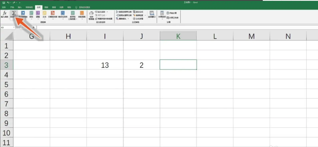 2、在公式里面的分欄找到,自動求和的按鈕。點擊它應用。