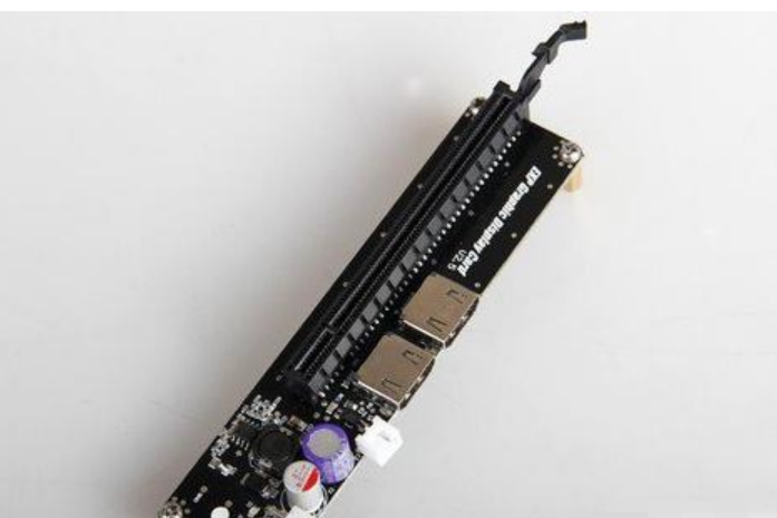 7、下面把外置顯卡插在EXP GDC的主板上注意對齊,猛烈的插進去就行。