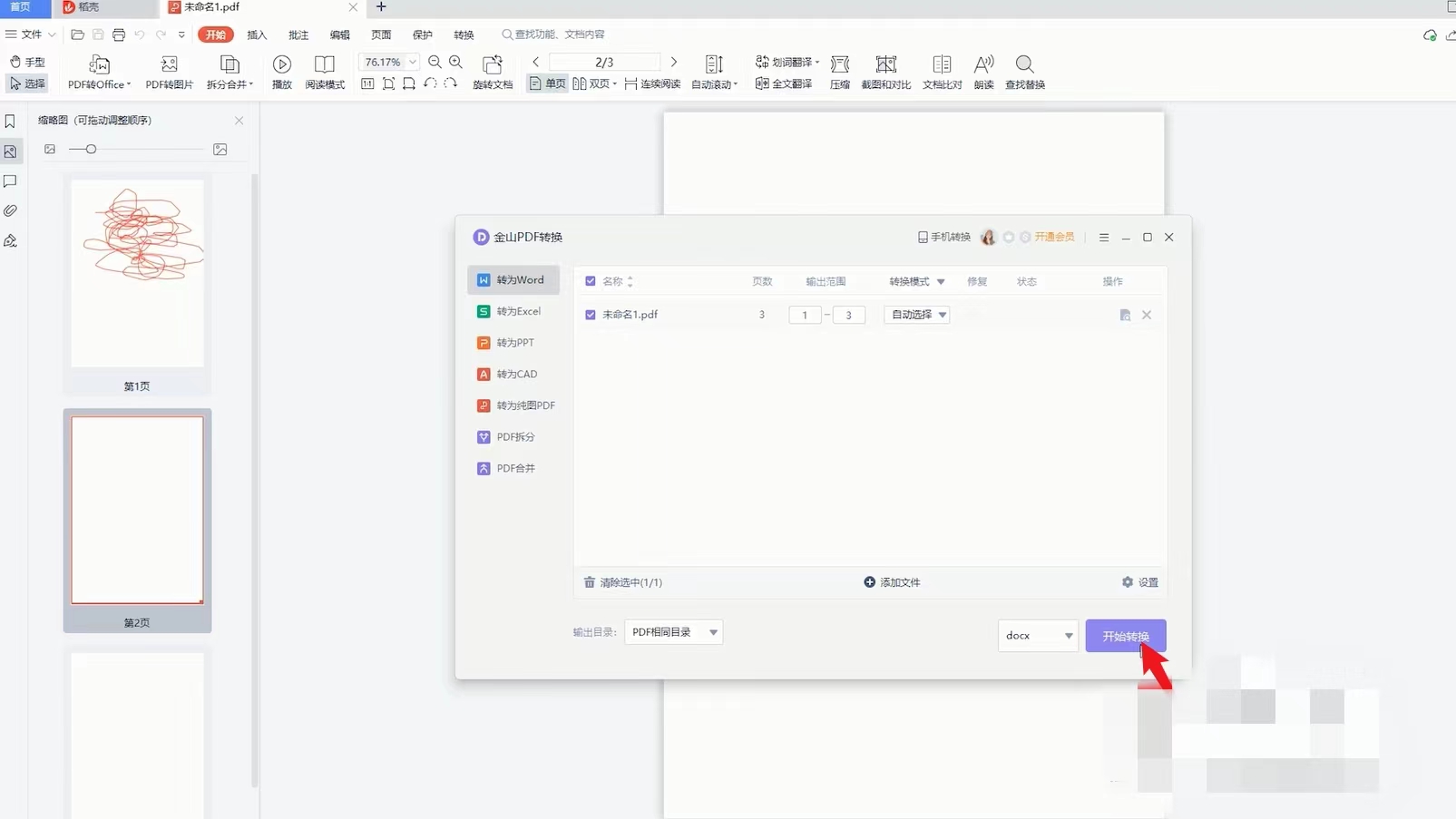 3、點擊開始轉換接著會彈出一個對話框,在彈出的對話框中點擊頁面右下角的開始轉換即可。