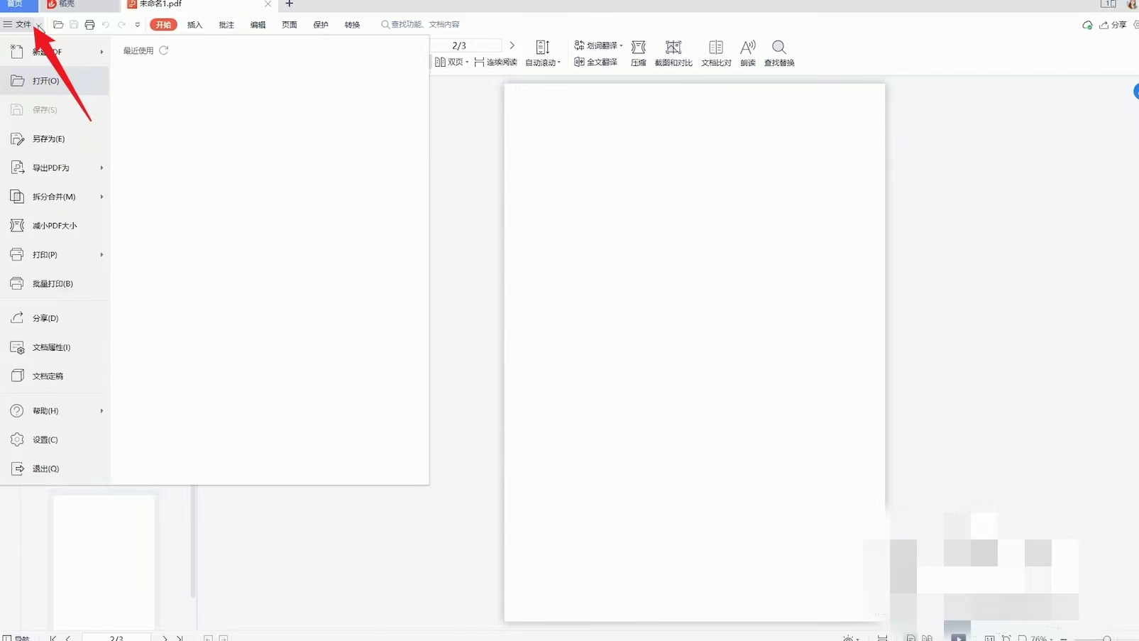 1、點擊文件在打開的PDF文檔中,點擊頁面左上角的文件選項,等彈出序列欄。