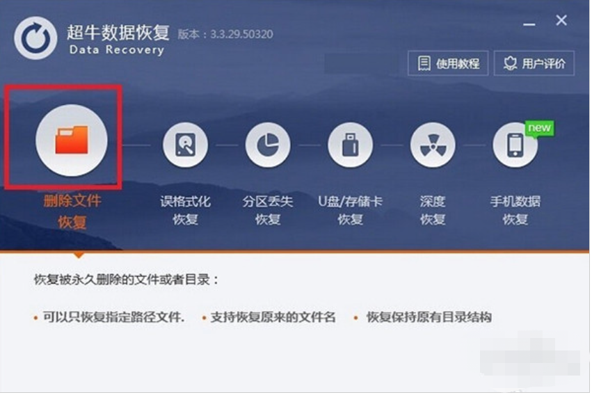 1、打開數據恢復工具界面選擇需要的模塊,例如刪除文件恢復。