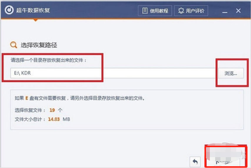 4、這樣,你勾選出你需要恢復出來的文件,指定一個文件夾作為恢復文件的位置,然后點擊“下一步”。