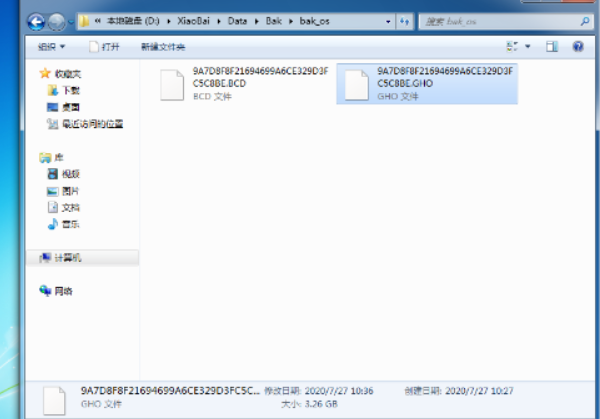 8、完成后此時將會自動重啟電腦,重啟進入到系統,在電腦中的硬盤XiaoBai\Data\Bak\bak_os 文件夾中找到自己備份的系統鏡像就可以啦。