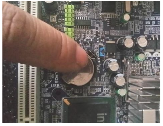 內存更換也不行,就是主板的問題了,這種情況也不復雜,給主板放電即可。我們可以在斷電后把主板上的紐扣電池取下,然后把電池旁邊的跳線帽(圖中藍色的就是)短接在二三針腳上,幾分鐘后電池上好,跳線帽復位,稍等一會兒再開機即可。