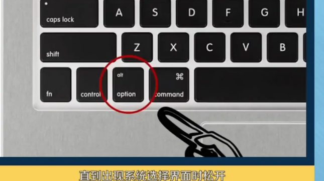 1、我們找到自己電腦上面的alt(option)鍵。然后一直按到出現系統選擇界面再松開。