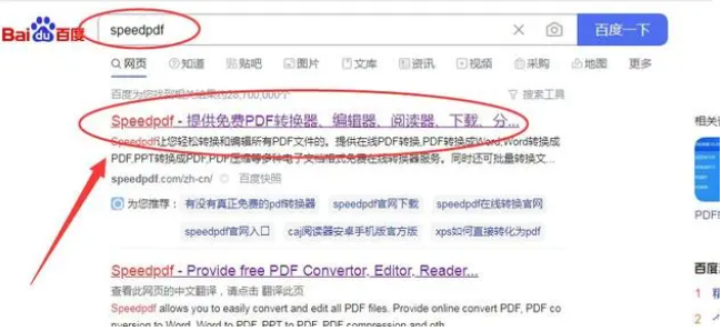 1、打開電腦瀏覽器搜索speedpdf,找到官方地址進入。