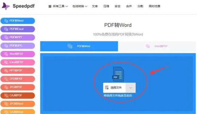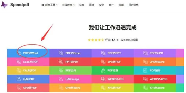 2、來到speedpdf平臺首頁,點擊PDF轉換Word。