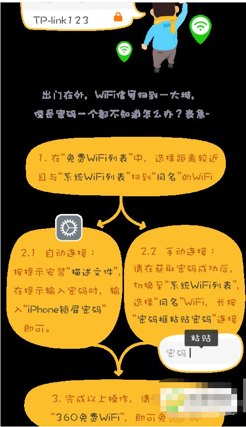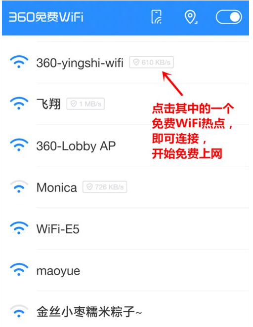 360免費wifi這是一款免費連接WiFi的手機APP軟件來的,分為安卓版、iOS版。連網比較簡單,安卓版僅需兩步,即可輕松得以免費上網了,下面就來介紹一下360免費wifi使用方法。