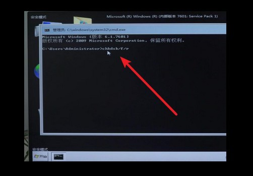 方法一:進入安全模式輸入chkdsk/f/r修復錯誤