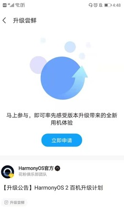 4、最終大家就能加入到洪蒙系統的升級頁面啦,立即升級就可以了。