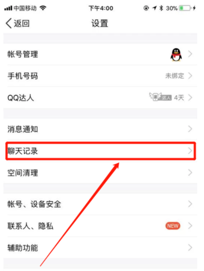 2.在設置的界面選項中,點擊聊天記錄進入下一步的操作。