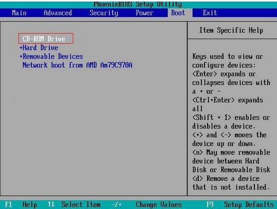 1、制作好Vista系統u盤后,或者直接使用Vista光盤放入電腦光驅中,然后通過快捷鍵進入bios界面,將光驅設置成第一啟動項,然后按F10保存退出。