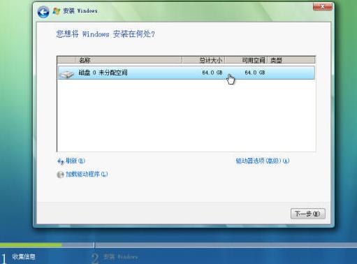 4、將系統安裝在我們想要安裝的磁盤上,如果磁盤空間還沒有分配就點擊驅動器選項進行格式化。