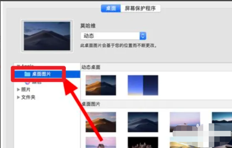 2、點擊打開偏好設置界面的【桌面與屏幕保護程序】桌面設置。