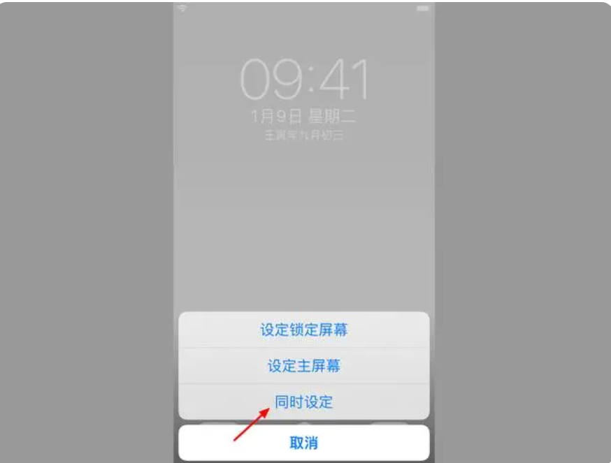 7、出現選項,點擊【同時設定】,這樣就設置壁紙成功。