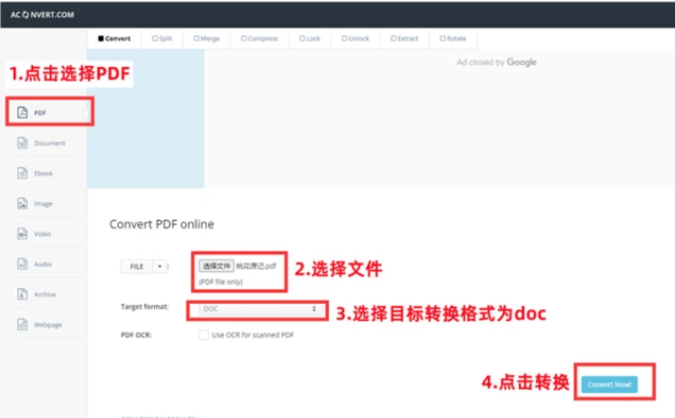 aconvet(網頁端)是一個非常好用的電腦端在線格式轉換的網站,我們只需瀏覽器上搜索進入網站,看到左側的工具欄的【PDF】,點擊選擇。然后上傳需要轉換的PDF文件,上傳好之后選擇輸出格式為doc,選擇好之后,點擊轉換,等待pdf在線轉換成word文檔完成即可。