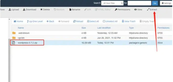 3、將剛才上傳的wordpress文件將其解壓。