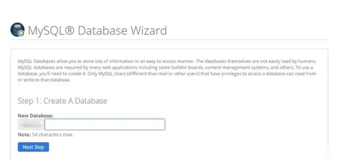 6、此時將會回到bluehost-advanced-cpanel-datebases- MYSQL Database Wizard。