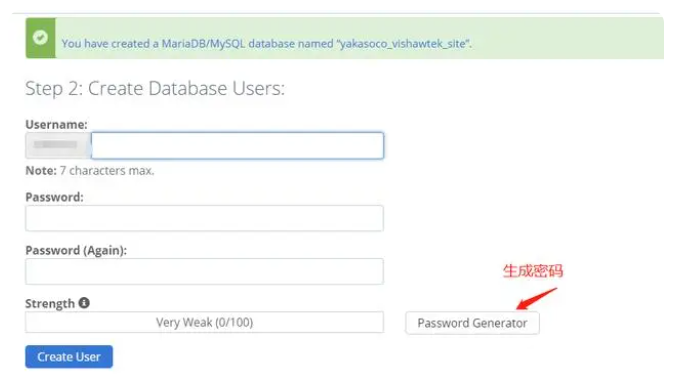 8、創建數據庫用戶等等(最好讓系統給你生成密碼)。